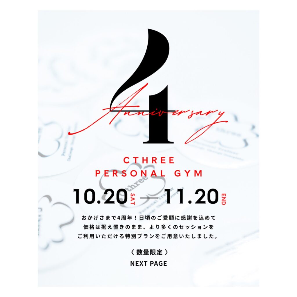 Cthree Personal Gym京都西院は10月20日で4周年を迎えます☺️